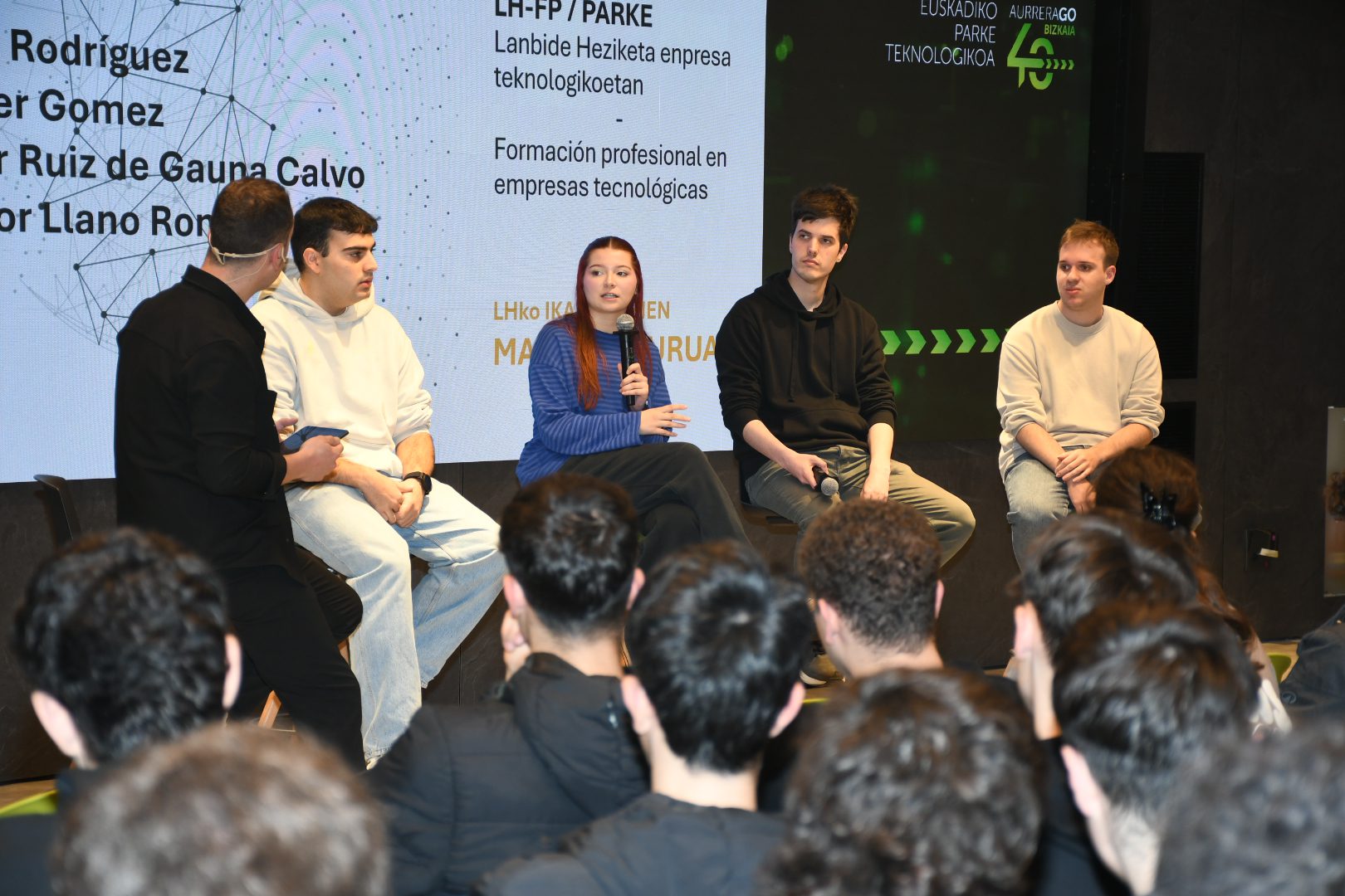 FP/Parke aims to spark students’ interest in scientific and technological professions from the perspective of vocational training. To this end, a series of activities is organised for young people in their first year of upper secondary school, as this is the stage at which they must make decisions about their future based on their career expectations. The event highlighted the strengths and job opportunities offered by the different vocational training pathways, while companies and technology centres located in the Euskadi Technology Park in Bizkaia showcased their activities and their need for specific STEM vocational training profiles.
