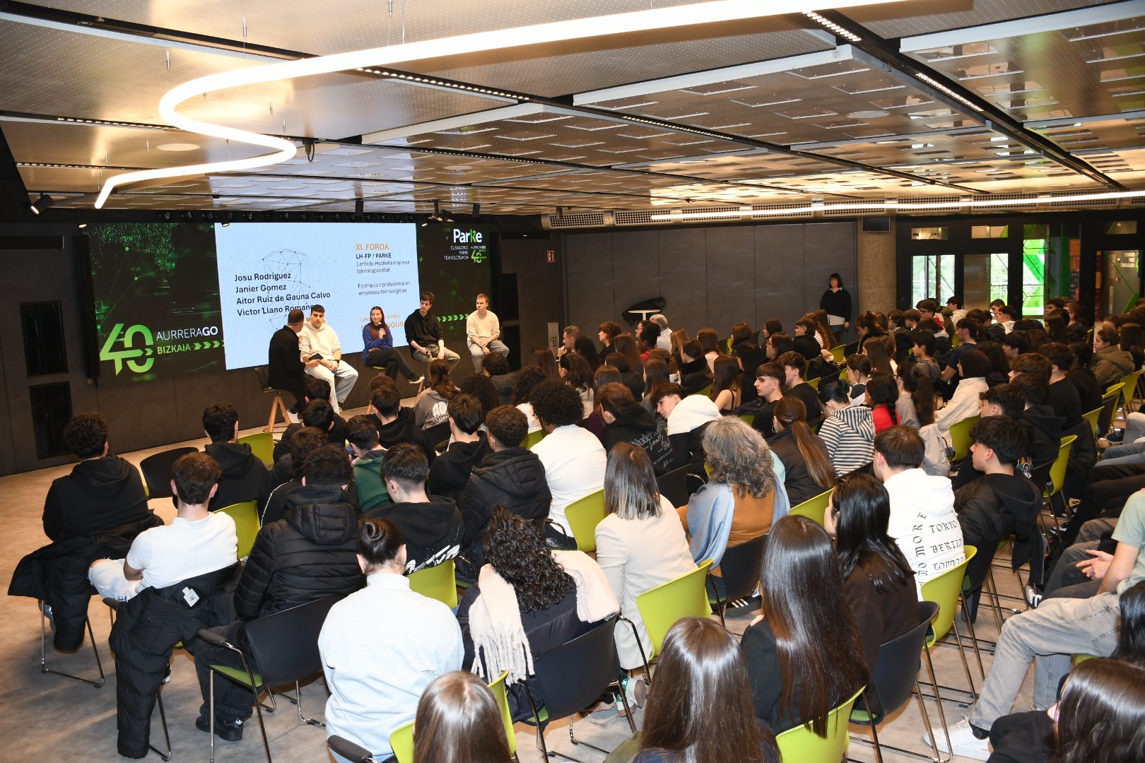 The HETEL and Ikaslan networks, which bring together private and public vocational training centres from the Basque Government’s Department of Education, and the Basque Technology Park, held the FP/Parke Forum at the Zamudio/Derio Campus. The aim of the forum was to showcase job opportunities in companies within the Technology Park, and it brought together 370 students from eight secondary schools who visited nine Parke companies.