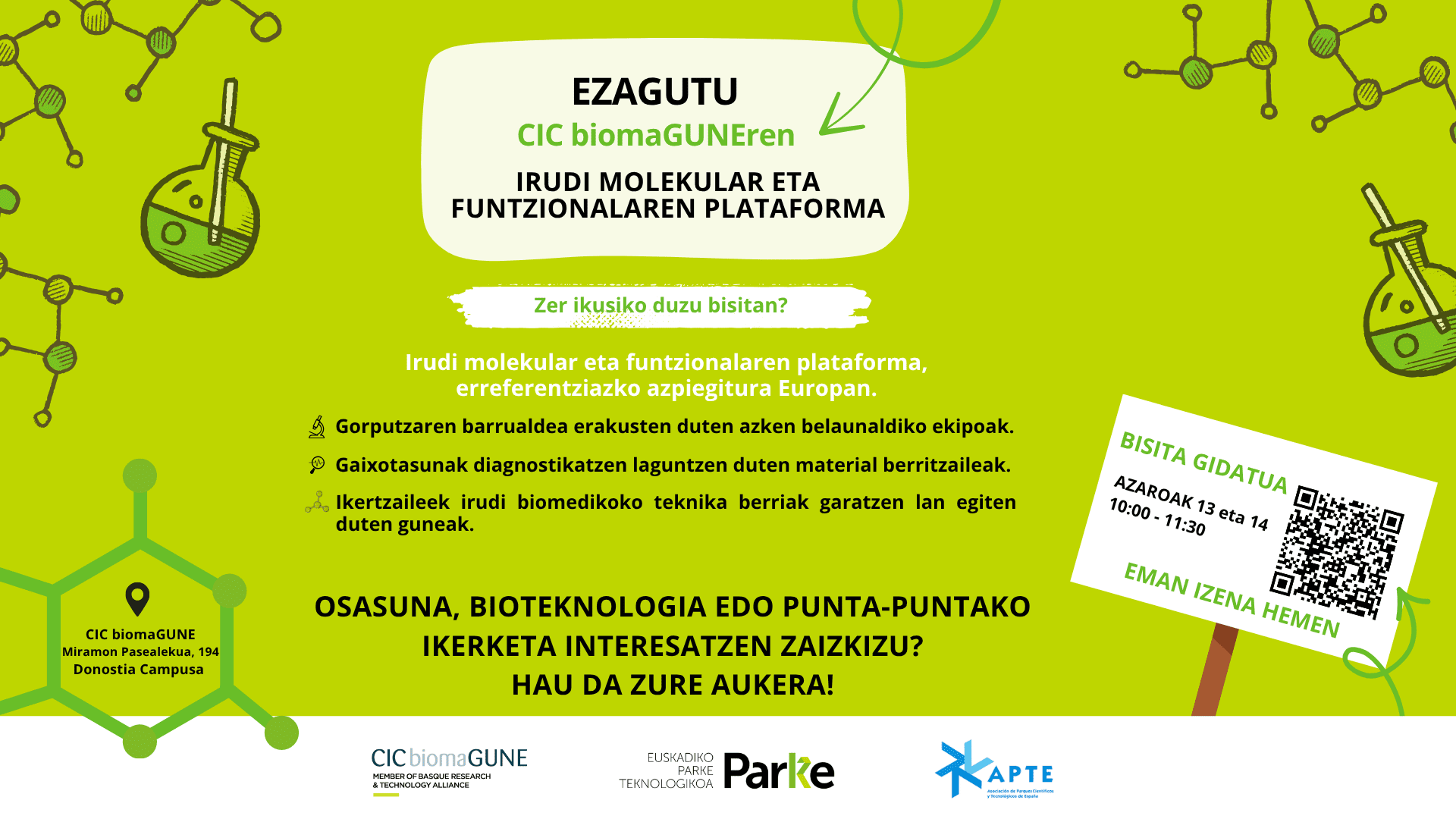 Azaroaren 13an eta 14an, CIC biomaGUNE ikerketa-zentroak, Donostia campusaren bihotzean dagoenak, Irudi Molekular eta Funtzionaleko Unitatera bisita gidatua egin zuen 10:00etan, Miramon pasealekuko 194. zenbakian.